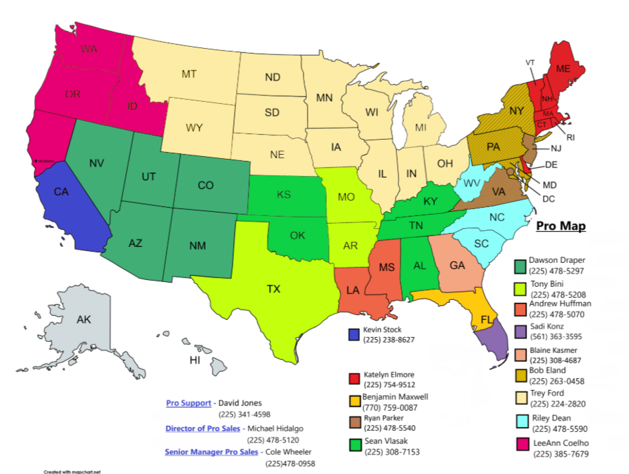 Please use link above for the most current PRO map with rep info. Scroll down to select state or view contact information.