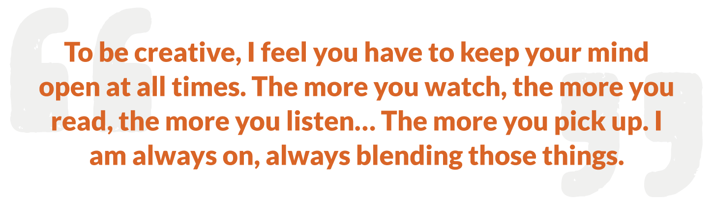 So, I’m literally that guy who will take a shower, realize I have 20 ideas, and just have to write them down. I know I sound crazy. To be creative, I feel you have to keep your mind open at all times. The more you watch, the more you read, the more you listen… The more you pick up. I am always on, always blending those things. That’s why I’m known in the BBQ community for being the cross between backyard and fine dining.