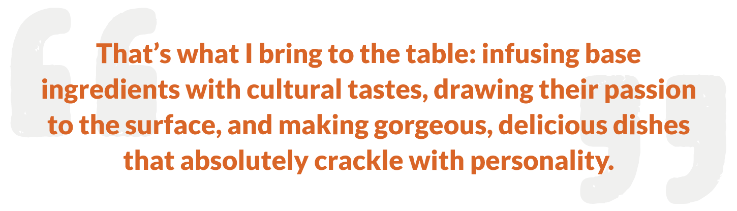 "Backyard BBQ is a traditional area, but fine dining is more about the invention. That’s what I bring to the table: infusing base ingredients with cultural tastes, drawing their passion to the surface, and making gorgeous, delicious dishes that absolutely crackle with personality. And at Chiles and Smoke, I’m gonna show you how to do it."